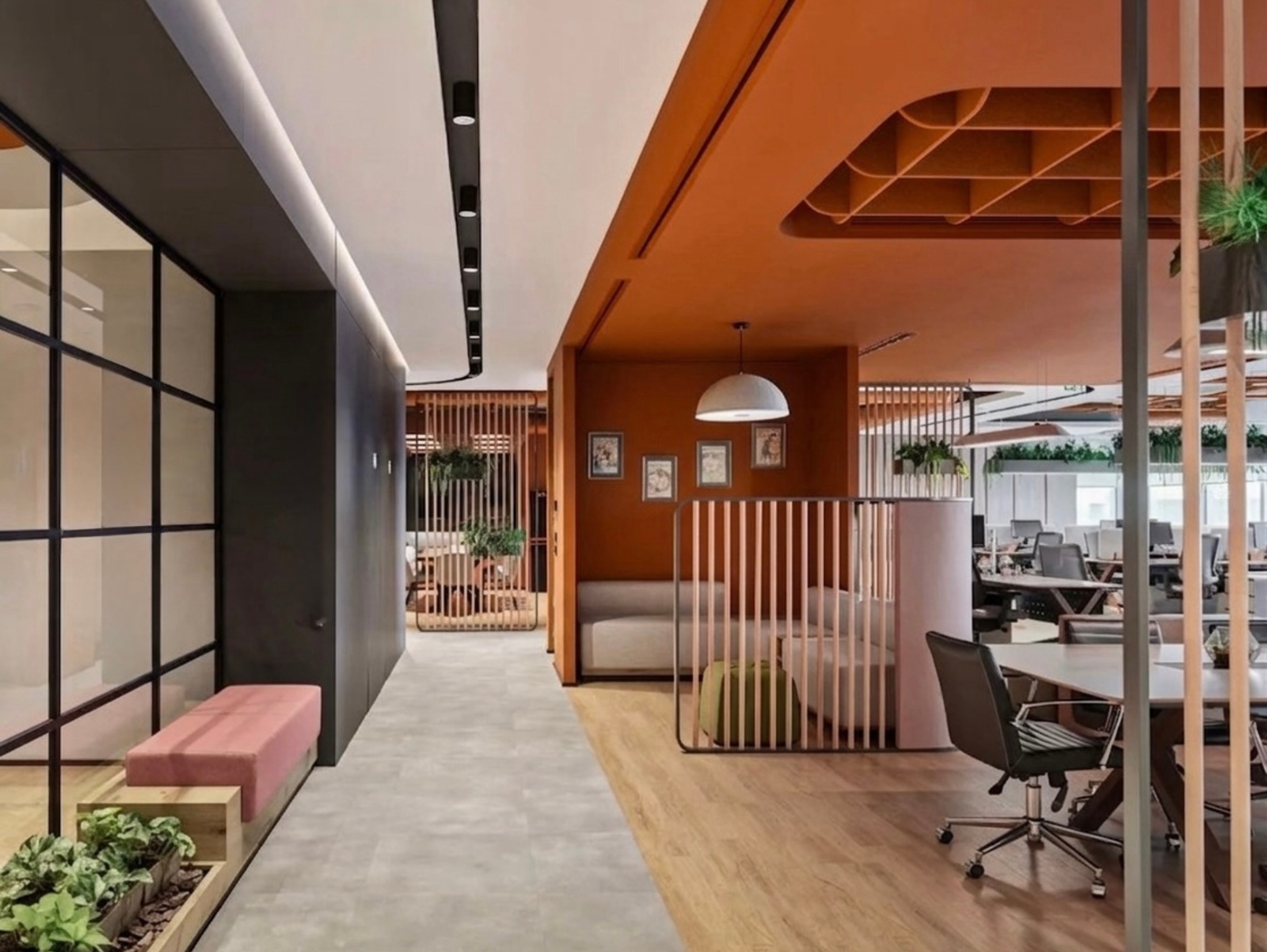 A study by the Fraunhofer Institute found that, despite the noise pollution in open-plan spaces, employees generate more ideas, experience more variety, have more fun and have a greater sense of achievement. Open-plan offices also make it easier to establish and strengthen social contacts. However, the same study also reveals that a noisy environment reduces employee productivity by 40 per cent.